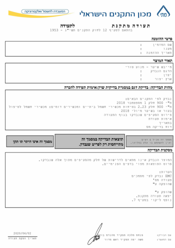 沃特(Waltek)是以色(se)列國(guo)家標準局(SII)指定(ding)的測(ce)試(shi)實(shi)驗(yan)室,可出具SII認可并用于申請SII認證(zheng)的測試報告,真誠助您的產(chan)品快速、高(gao)效地(di)進(jin)入以色列市場。